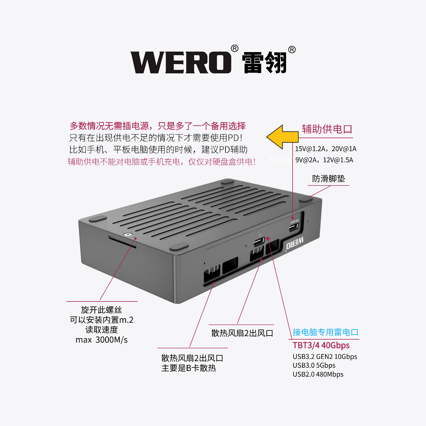 数据线:WERO雷电3线,intel官方认证线,请勿更换成非官方认证线