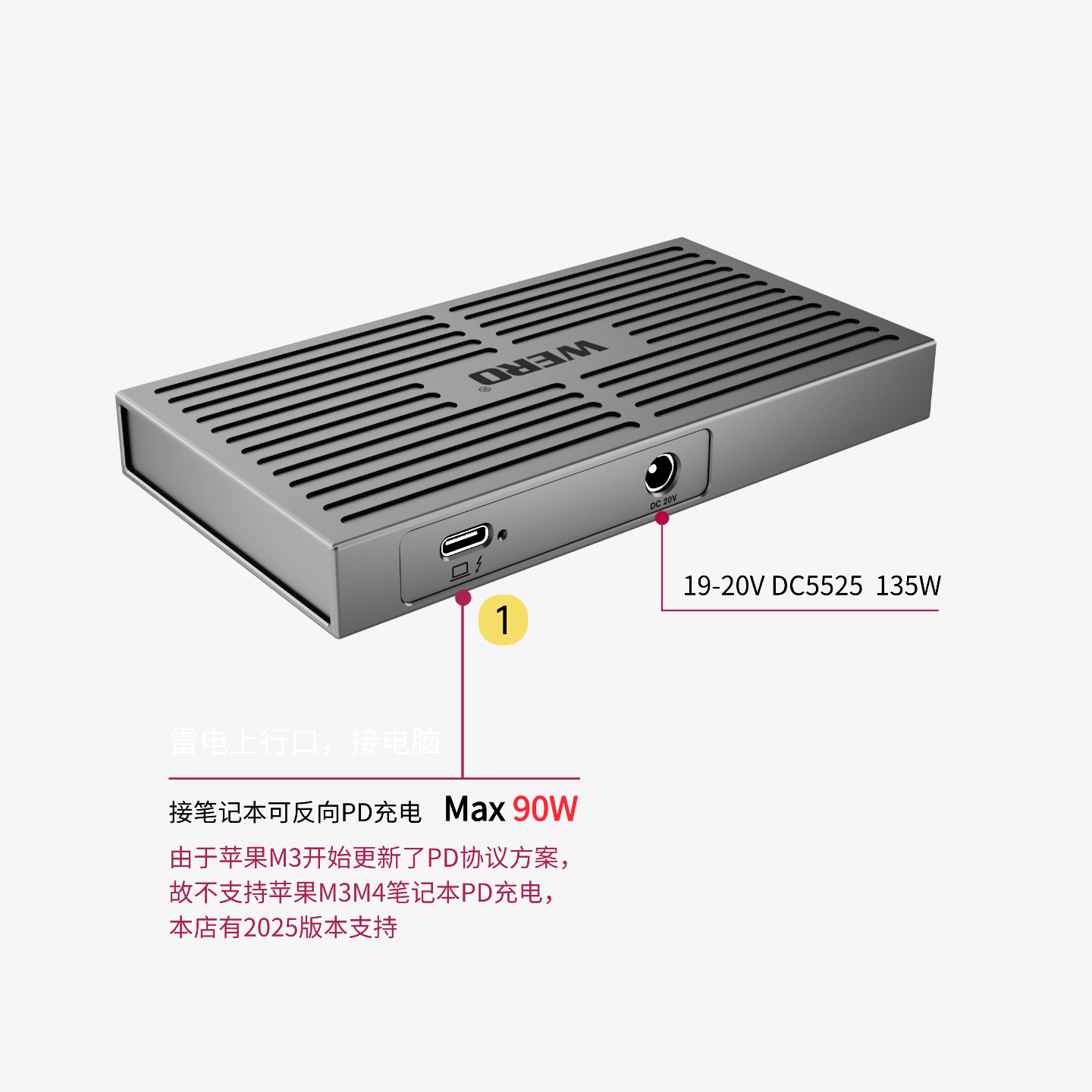 4、Since Apple M3-series chips began adopting an updated PD protocol, this product does NOT support PD charging for Apple M3/M4 laptops. Our store offers the Thunderbolt 4 HUB 2025 Model which supports these laptops—please contact customer service for the product link.