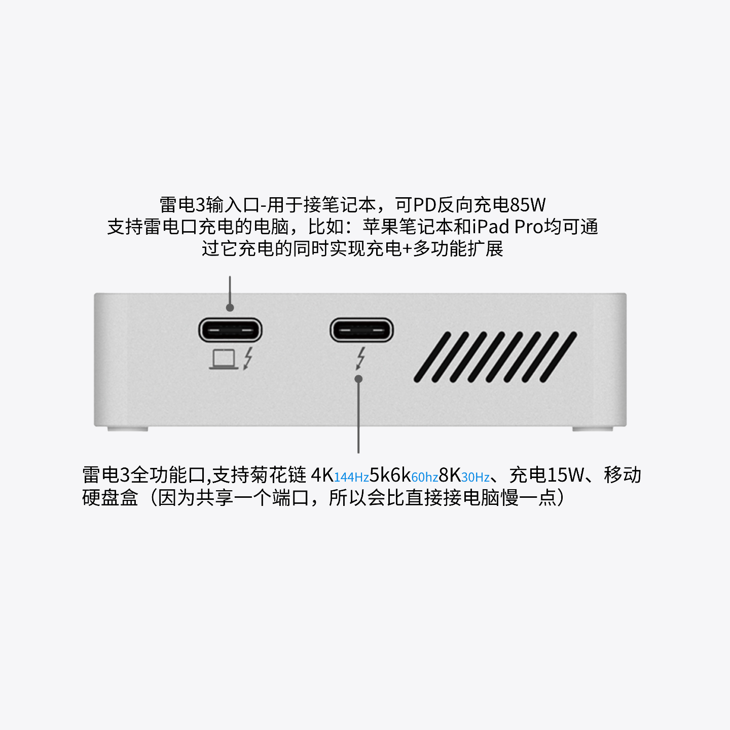 *上行雷电口:速率40Gbps, PD 85W