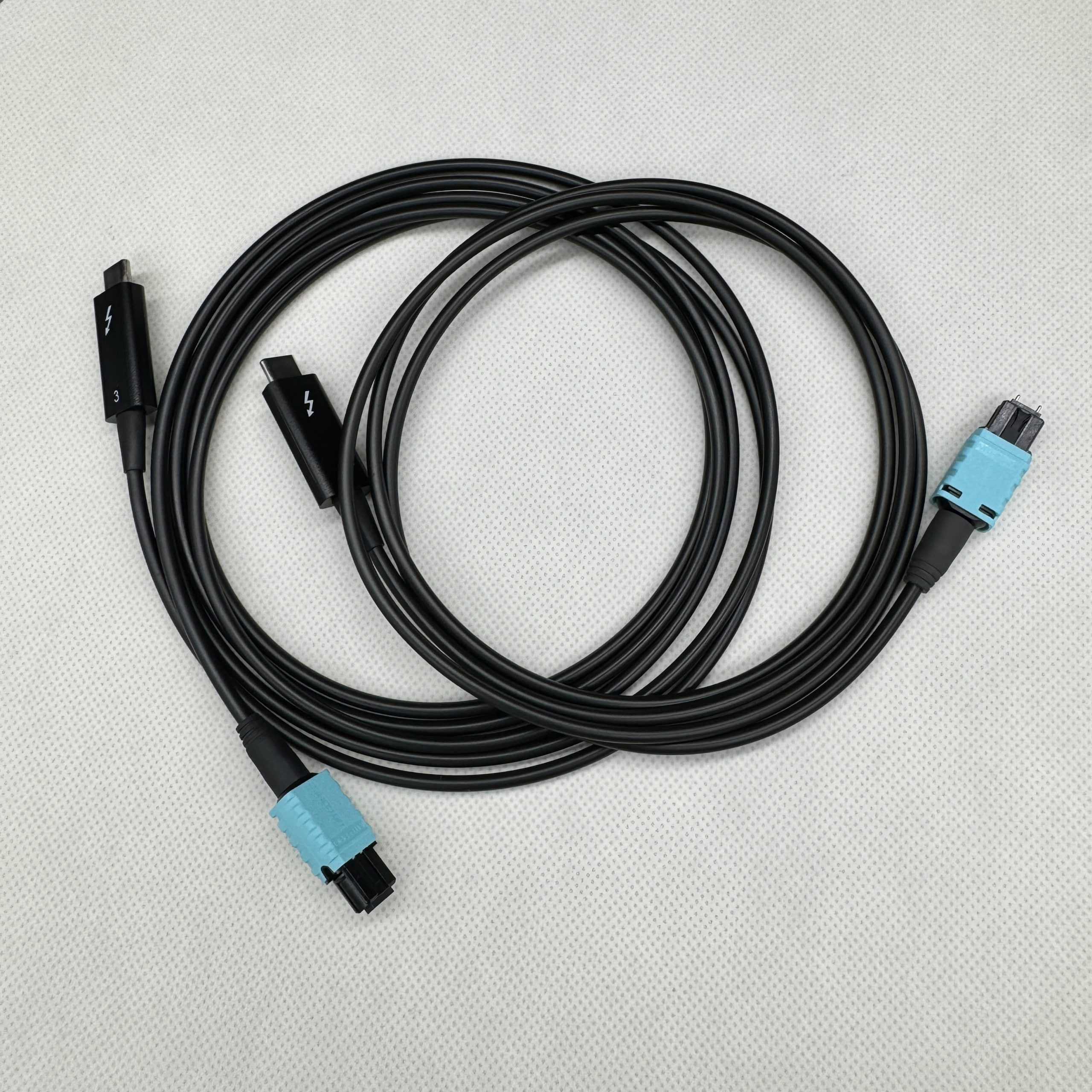 An optical cable using Thunderbolt technology to deliver great responsiveness with data and display transferring at 40 Gbps in each direction at the same time without sharing of bandwidth between connectors.