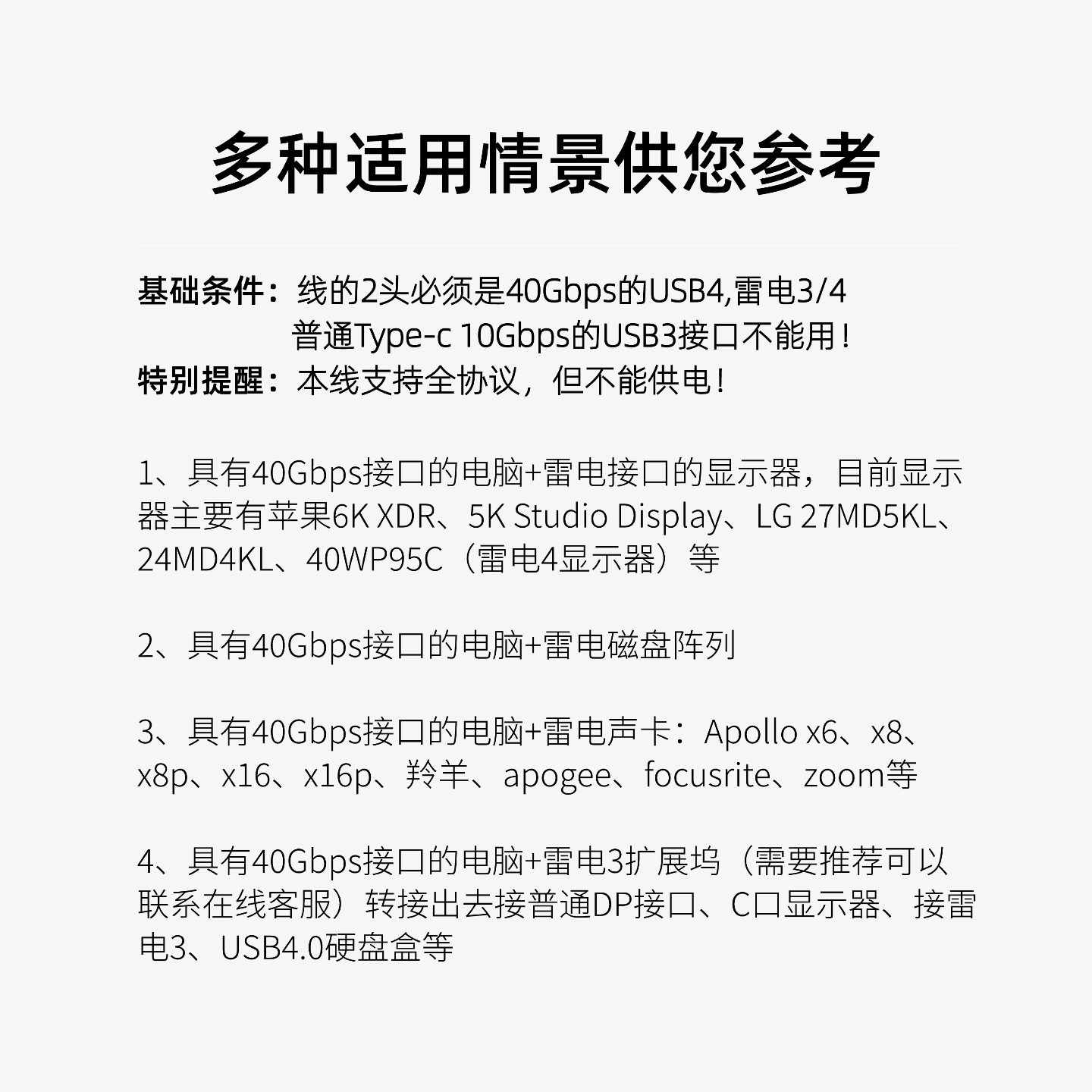 特别提醒:2头连接的必须是40Gbps速率的雷电3或4接/USB4口