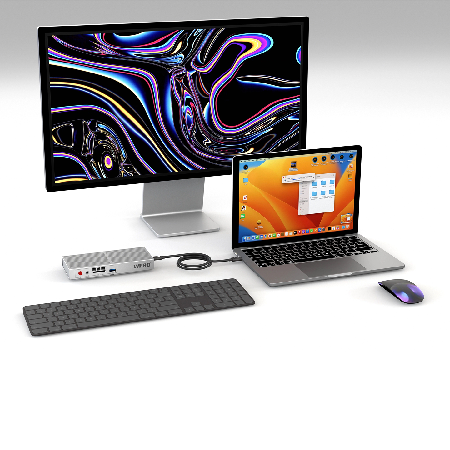 Cable: WERO Thunderbolt 3 cable (Intel officially certified). Do not replace with non-officially certified cables.⚠️ Note: Cables claiming to have “certified chips” are all fake certified cables! This will affect stability.⚠️ Supports lossless long-distance connection with WERO Thunderbolt 3 AOC fiber optic cables (5-50 meters)