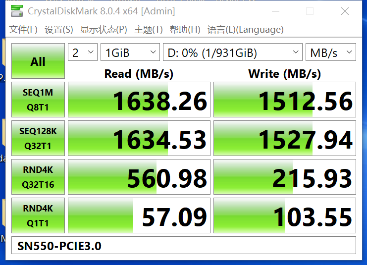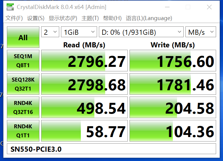 刷固件之前使用系数sn550 1t测速如下图: