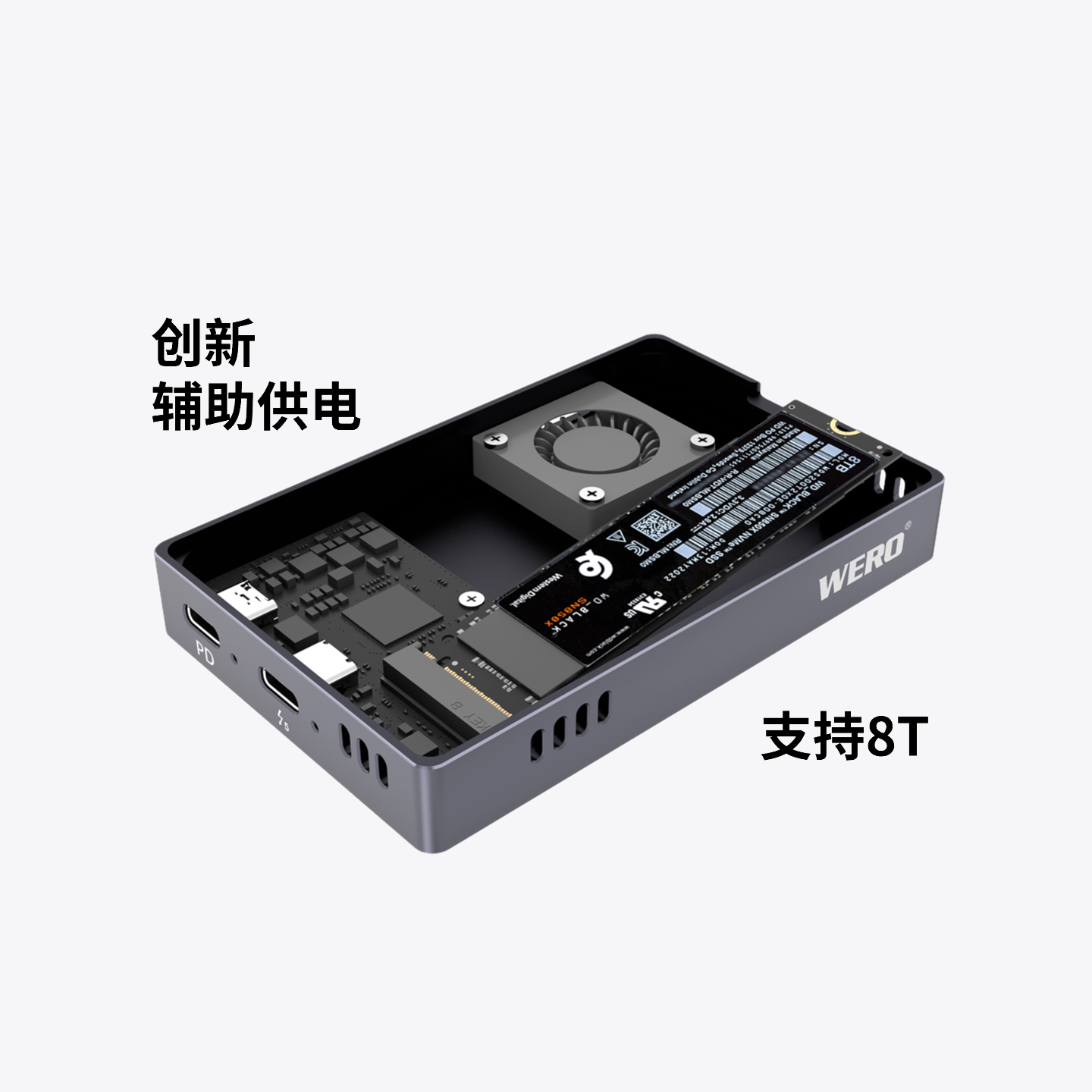 主动散热:定速风扇(指风扇以固定转速运行,持续为硬盘盒内部散热)
