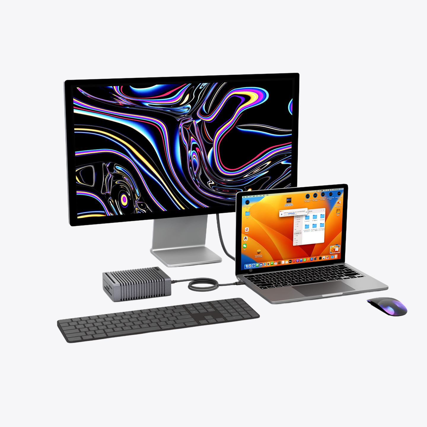 雷电下行口:全功能雷电5口,支持接硬盘盒、扩展坞、显示器、手机等,PD充电15W